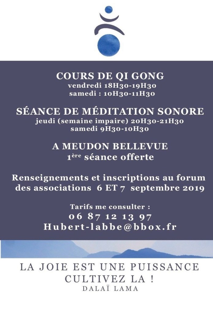 J’ai mis en place depuis cette année le concept « Corps Joie Energie » qui repose sur mon expérience de plusieurs décennies de techniques de développement personnel, ma pratique du Taï Chi, du Qi Gong et de la méditation depuis 18 ans. Il permet d’être présent dans son corps, de ressentir la joie de la circulation de l’énergie et le bien être que cela procure au quotidien.